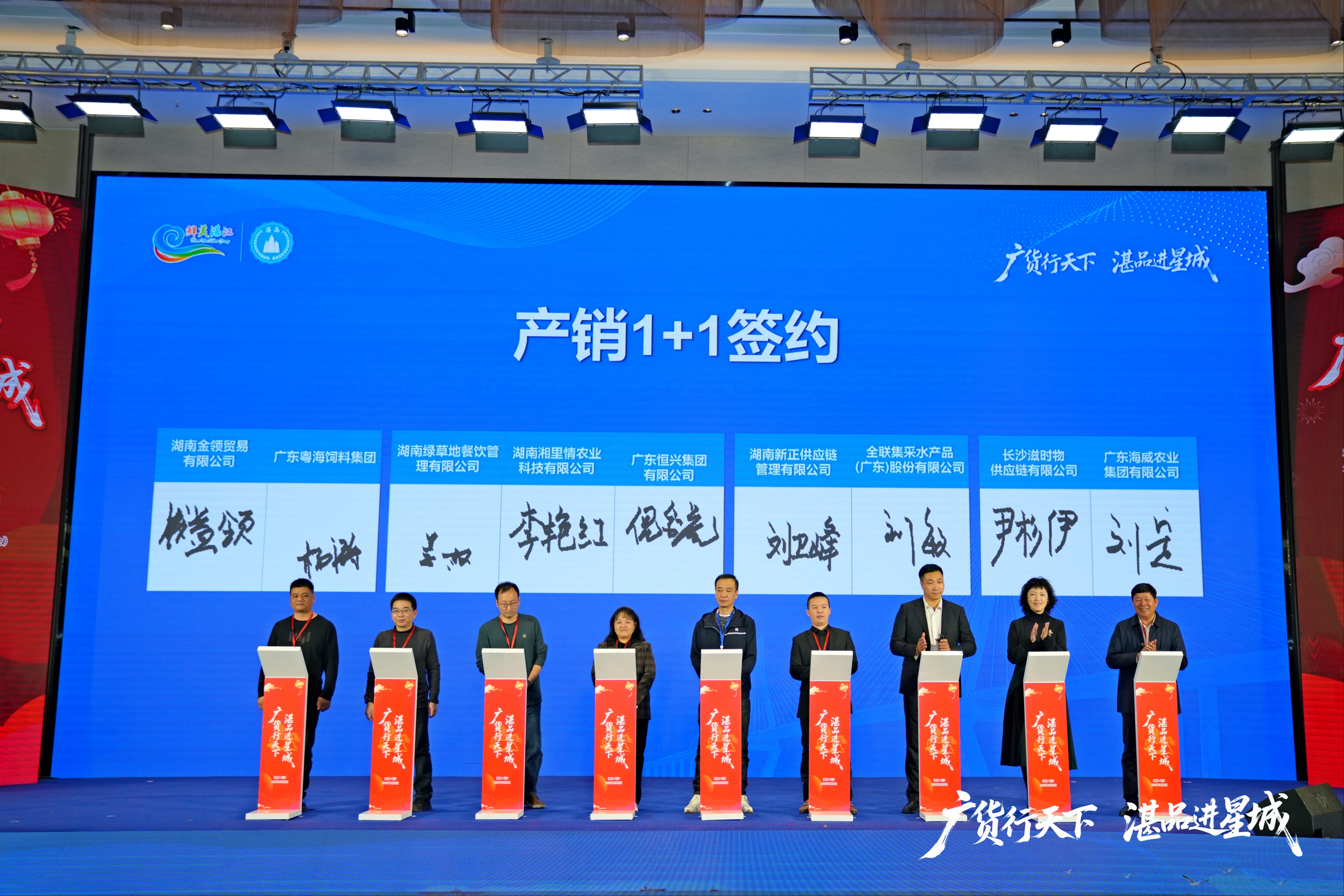 活动不仅是一场文化与美食的盛宴,更是一个高效的产业对接平台。在产销1+1仪式上,湛江国联水产、广东恒兴集团等企业与湖南金领贸易、湖南绿草地餐饮等12家企业达成合作,签约金额达11亿元。
